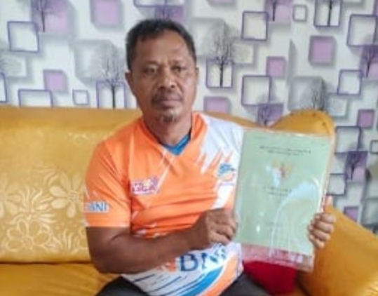 Pak Kmaiseng saat memperlihatkan sertifikat lahan miliknya yang diduga diserobot oknum penambang di Kolaka