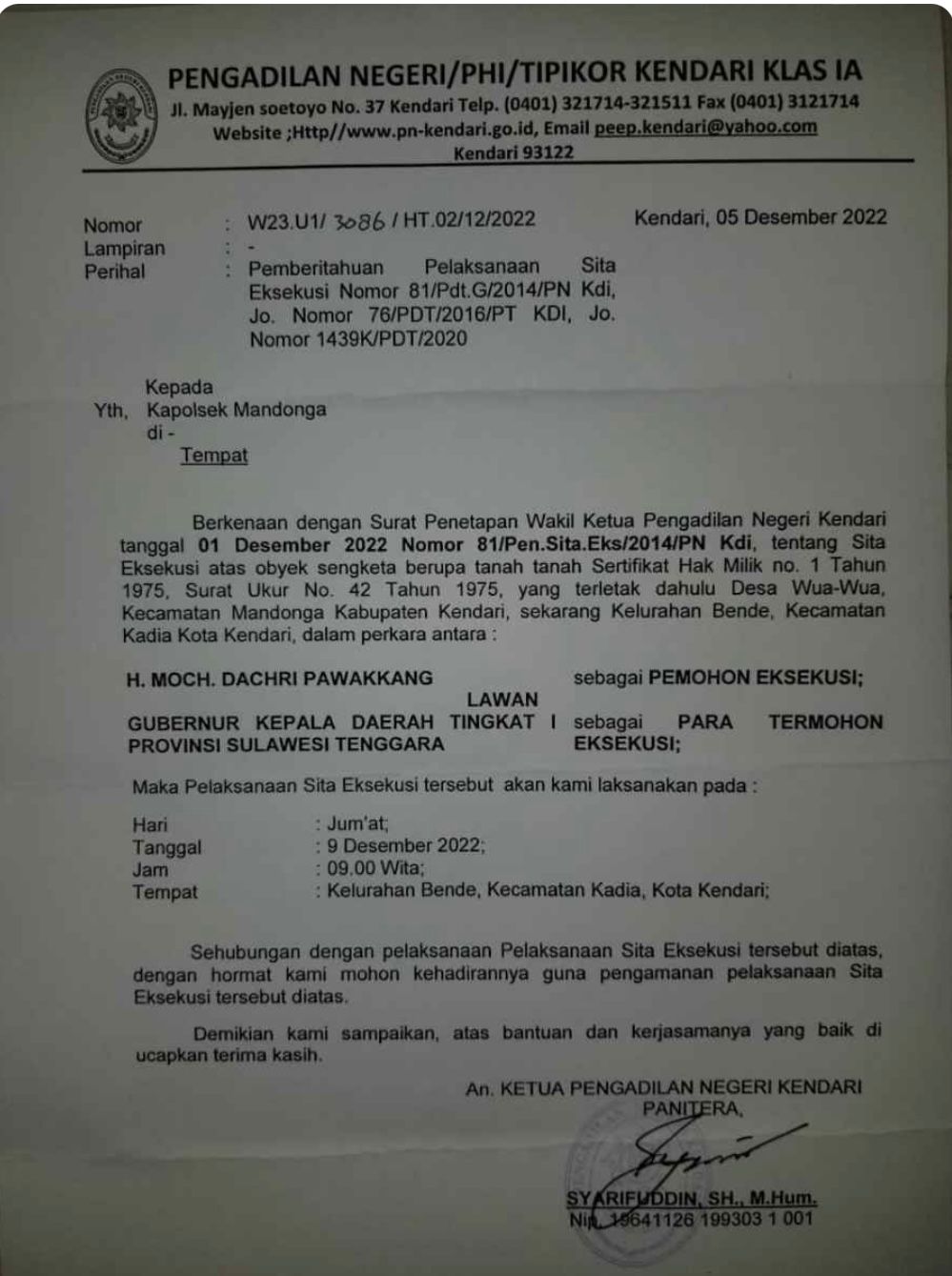 putusan pengadilan tidak memerintahkan pemda untuk membayar ganti rugi..terhadap lokasi yg disengketakan..juga kep MA itu .. NO artinya tdk ada pemenang dari yg bersengketa., Ini info dari pemda melalui mantan kadis pu cipta karya Fahri. Ujarnya pada dpw lira sultra melalui washap tanggal 12 pebruari 2023, tim dpw lira sultra juga langsung menkonfirmasi mantan kepala dinas cipta karya dan tata ruang terkait lahan stadion memerikan jawaban