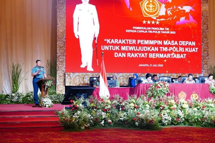 Hal tersebut disampaikan Panglima TNI Laksamana TNI Yudo Margono, S.E., M.M. saat memberikan pembekalan kepada 833 Calon Perwira Remaja (Capaja) TNI-Polri di Gedung Balai Sudirman, Menteng Dalam, Jakarta Selatan, Jumat (21/7/2023).