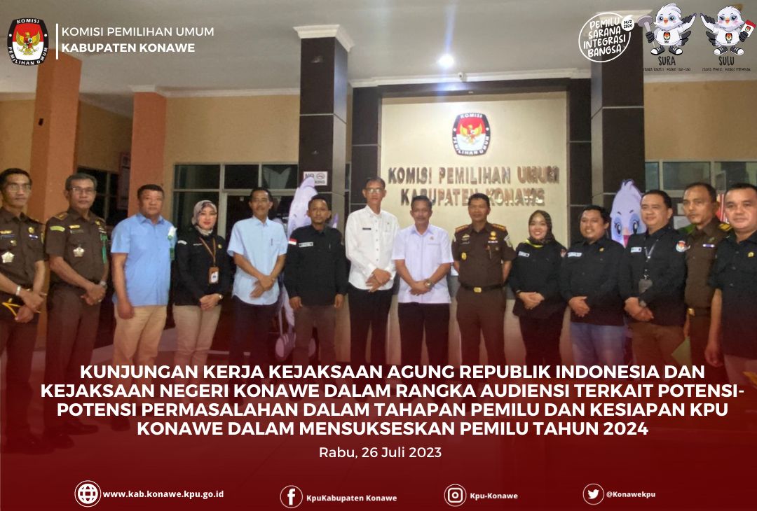 StoryNews.id, Konawe – Komisi Pemilihan Umum atau KPU Kabupaten Konawe mendapat kunjungan dari Kejaksaan Agung (Kejagung) RI , Rabu, 26/07/2023.