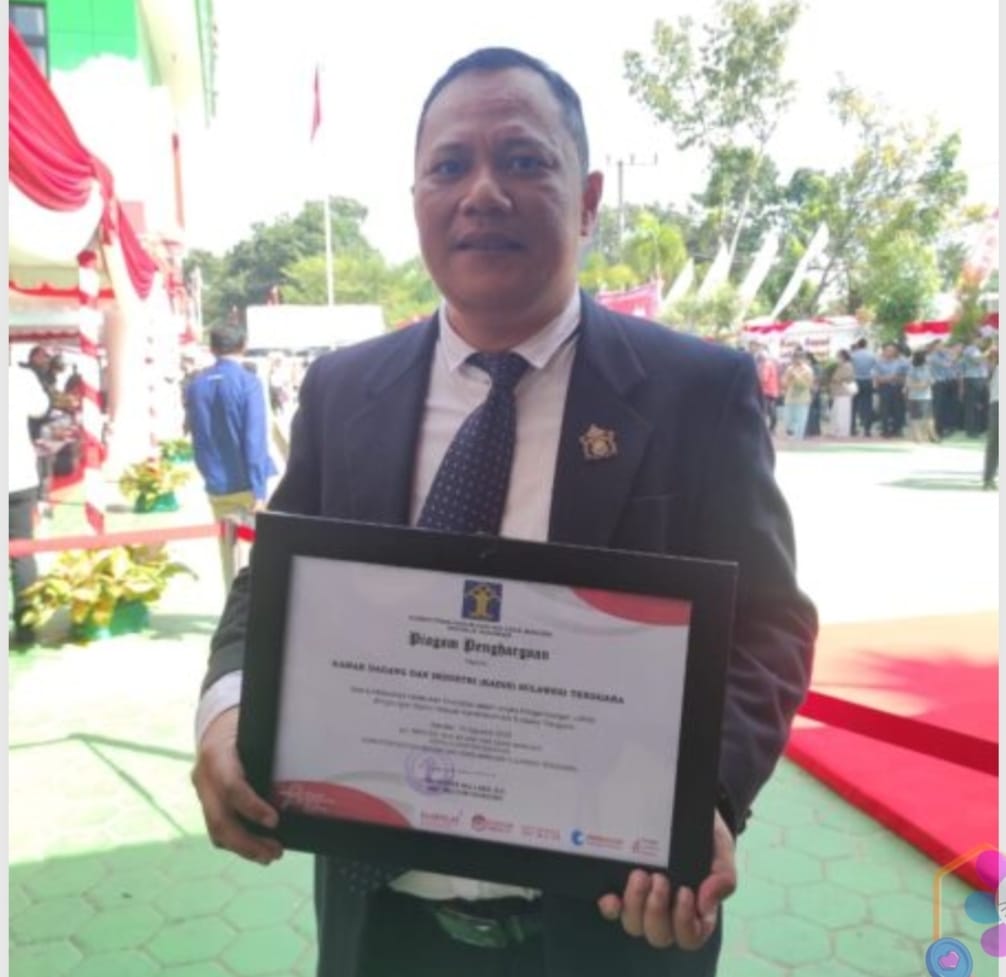 StoryNews.id, Kendari – Momen perayaan Hari Dharma Karya Dika (HDKD) ke-78, Kamar Dagang dan Industri (Kadin) Sulawesi Tenggara (Sultra) menerima penghargaan dari Kementerian Hukum dan Ham (Kemenkumham) Sultra, Senin (21/8/2023).