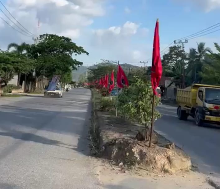 StoryNews.id, Konawe Selatan – Calon Legislatif Dewan Perwakilan Rakyat Daerah Kabupaten Konawe Selatan (DPRD) Konsel Bobi Kibarkan atribut Bendera PDI Perjuagan di sepanjang ruas jalan Kecamatan Konda