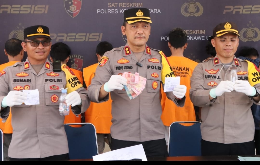 StoryNews.id, Konut – Kepala Kepolisian Resor (Kapolres) Konawe utara AKBP Priyo Utomo, S.H., S.I.K memimpin pelaksanaan Press Release pengungkapan Kasus Tindak Pidana penyalahgunaan Narkoba di wilayah Hukum Polres Konawe utara, Senin (13/11/23) sekira pukul 11.00 wita